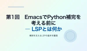 次の第3回では、実際にEmacsでPython補完を動かし、lsp-mode または eglot と組み合わせて設定する過程を解説する。