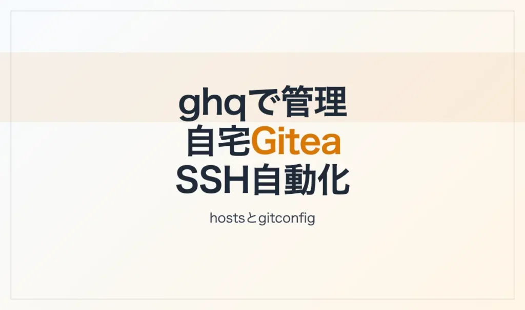 プライベートGiteaサーバーとghqを連携させることで、自宅のリポジトリ管理を効率化できる。この記事では、ローカルネットワーク上のGiteaサーバーをghqで管理するための設定手順を記録する。 検証環境 macOS(ghq導入済み) Giteaサーバー:192.168.0.100(HTTPSなし、SSH接続可能) 対象リポジトリ:[email protected]:org/repository.git... -