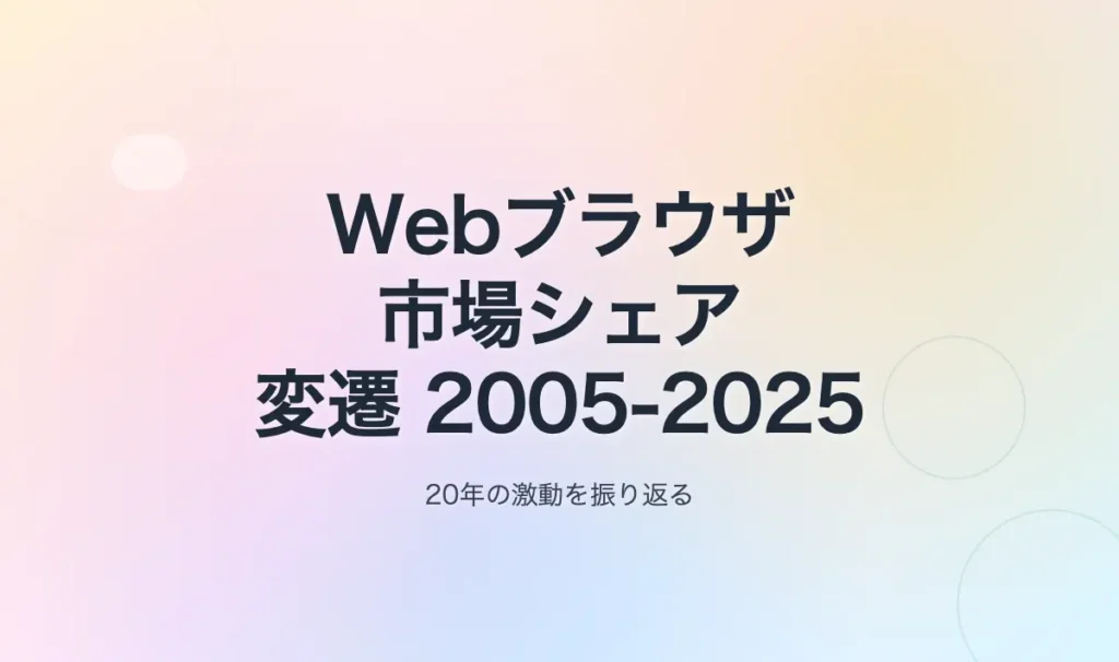 過去20年間でWebブラウザの勢力図は劇的に変化しました。2000年代半ばにはMicrosoftのInternet Explorer(IE)が世界市場をほぼ独占していましたが、その後Mozilla FirefoxやGoogle Chromeなどの新興ブラウザが台頭し、現在ではChromeが支配的な地位を占めています。本稿では2005年から2025年までのブラウザ市場シェアの推移を時系列で振り返... -