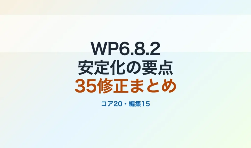 WordPress 6.8.2は2025年7月15日にリリースされた重要なメンテナンスリリースです。この更新は新機能の追加ではなく、20のコア修正と15のブロックエディター改善に焦点を当てた安定性向上のリリースとなっています。 リリース概要と重要な変更点 WordPress 6.8.2はショートサイクルメンテナンスリリースとして位置づけられ、WordPress 6.8で... -