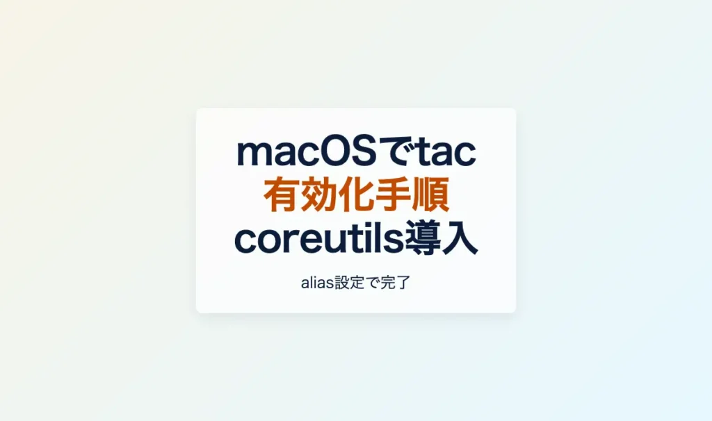 pecoなどのCLIツールを使用する際に、Linuxでは標準的なtacコマンドがmacOSでは利用できずエラーが発生することがある。この記事では、macOSでtacコマンドを使えるようにするための設定手順を記録する。 検証環境 macOS Homebrew導入済み bash または zsh tacコマンドとは tacコマンドは、ファイルの内容を行単位で逆順に出力するLinuxの標準... -