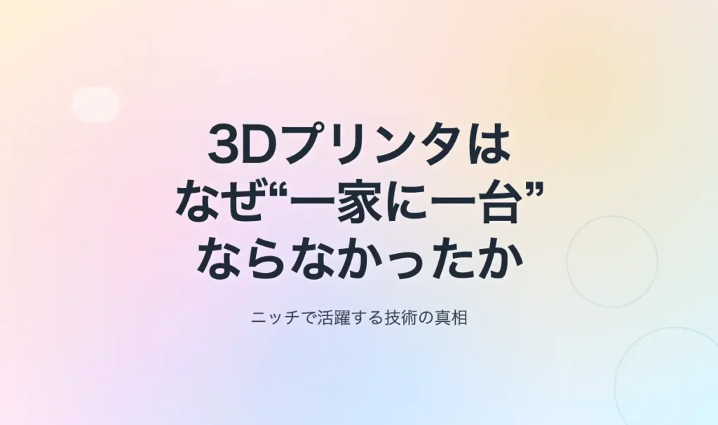 3Dプリンタという言葉が、日本の技術業界を賑わせてからもう十年以上が経つ。あの頃は「未来の家庭には3Dプリンタが並び、誰もが自宅で必要な部品を作るようになる」と大真面目に語られていた。確かに、聞こえは良い。家の片隅で小型の工場が動き、失われた部品や欲しかった形状が一夜にして生まれる──まるでSF映画のようだ。しかし、現実に... -